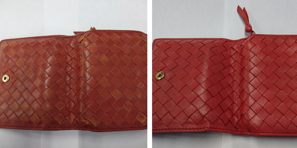 キズ、シミ、汚れなどのリペアなら同色での染め直しがオススメです。ブランド品の財布やバックなどは買い替えよりも染め直しでリペアがお得です。